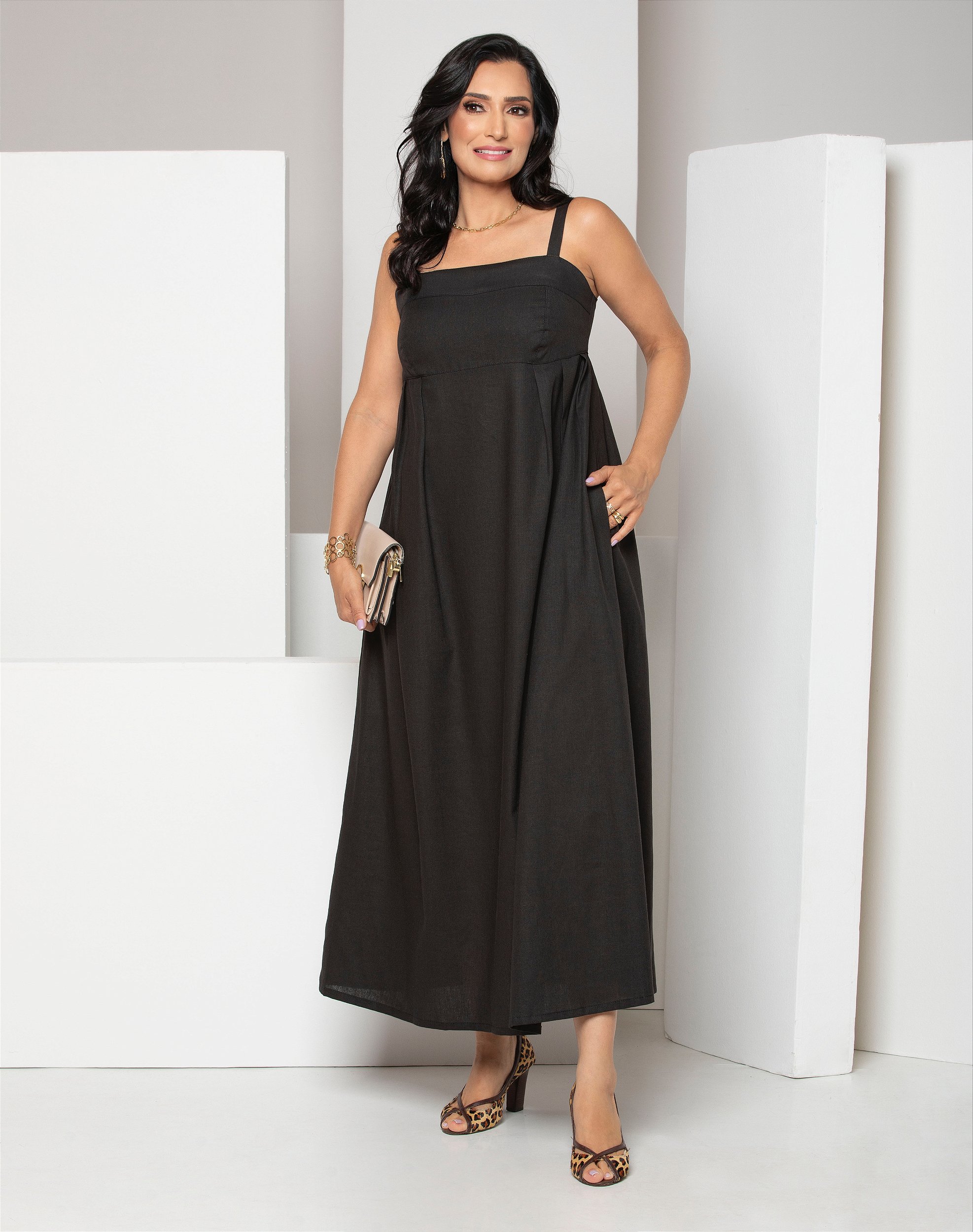 Vestido Jade, decote quadrado, estilo Midi, alça ajustavéis.